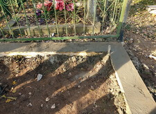 Периметр участка мы залили бетоном, предусмотрев специальный выступ. В дальнейшем он послужит основанием для надгробья.